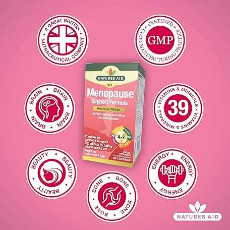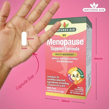Sản phẩm Natures Aid Menopause Support Formula – Multivitamin with SOYA Isoflavones & Sage Tablets – Supports Hormonal Balance, Energy & Mood – Vegan, Gluten Free, Non-GMO – 30 Capsules đang được bán với giá ưu đãi là $18.4864 tại nước Anh.