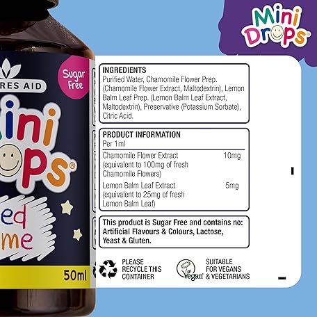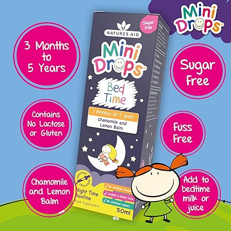 Thông tin sản phẩm Natures Aid Mini Drops Bed Time 50ml – Supports Restful Sleep and Calm – Natural Supplement for Kids 3 Months to 5 Years at Bedtime – Vegan, Gluten-Free, Non-GMO – Easy Dropper – No Added Sugar
