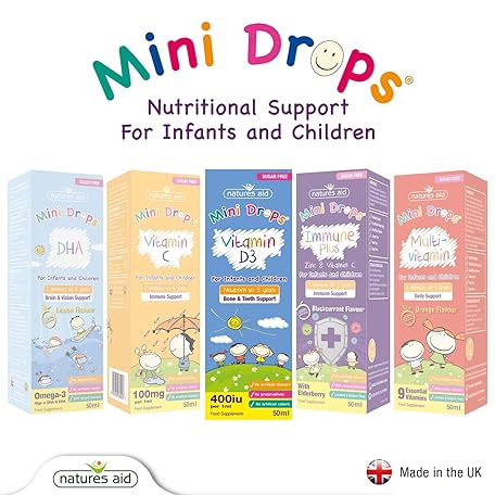 Sản phẩm Natures Aid Mini Drops Vitamin D3 50ml for Infants & Kids - Bone, Teeth, Health & Immune System Support - Sugar Free, Vegan, Gluten-Free, Non-GMO - Growth Support for Children Age 0-5 Dropper Included đang được bán với giá ưu đãi là $5.0467 tại nước Anh.
