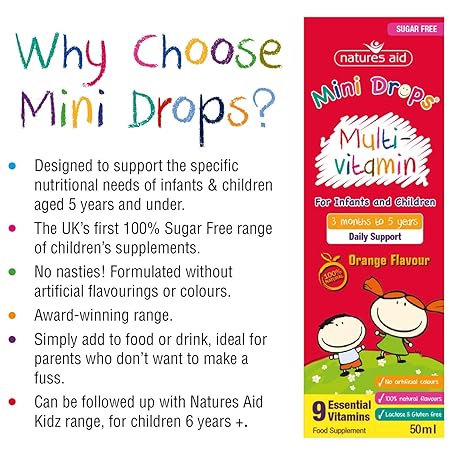 Sản phẩm Natures Aid Orange Flavour Multi-Vitamin Drops for Infants and Children, 50ml đang được bán với giá ưu đãi là $11.445 tại nước Anh.