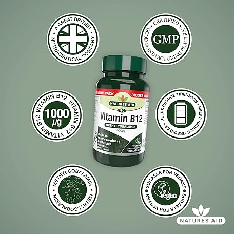 Sản phẩm Natures Aid Vitamin B12 1000µg – High Strength Methylcobalamin Supplement – Supports Energy & Reduces Tiredness – Vegan, Vegetarian, Gluten Free – Not Gummies or Capsules – 180 Tablets đang được bán với giá ưu đãi là $21.9744 tại nước Anh.