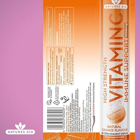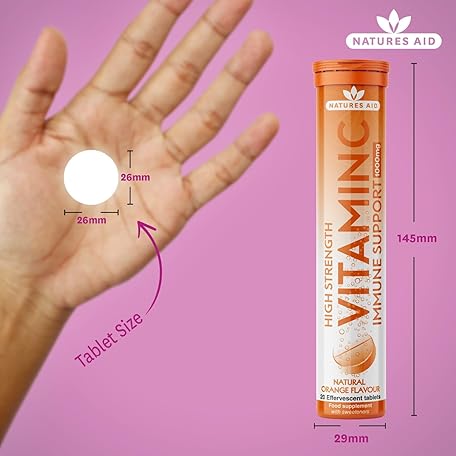 Thông tin sản phẩm Natures Aid Vitamin C 1000mg Effervescent 20 Tablets – High Strength Fizzy Supplement – Immune Support & Collagen Formation – Vegan, Vegetarian, Gluten Free – No Gummies or Capsules