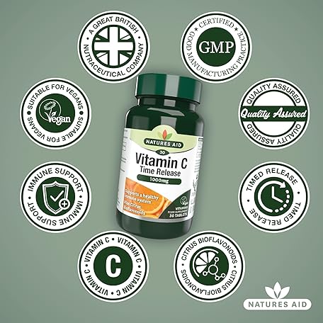 Sản phẩm Natures Aid Vitamin C 1000mg Time Release - High Strength with Bioflavonoids - Supports Immunity, Bones & Heart - Antioxidant - Vegan, Gluten-Free, Non-GMO Supplement – 30 Tablets đang được bán với giá ưu đãi là $7.0741 tại nước Anh.