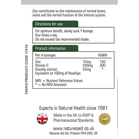 Sản phẩm Natures Aid Zinc + C - Zinc with Vitamin C - 30 Lozenges đang được bán với giá ưu đãi là $11.9682 tại nước Anh.