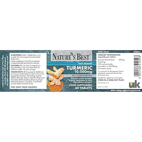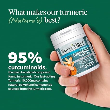 Thông tin sản phẩm NATURE'S BEST Turmeric 10,000mg Tablets Fast Release - High Strength, 95% Curcuminoids - Taste-Free - UK Made - 60 Tablets (2 Months' Supply)