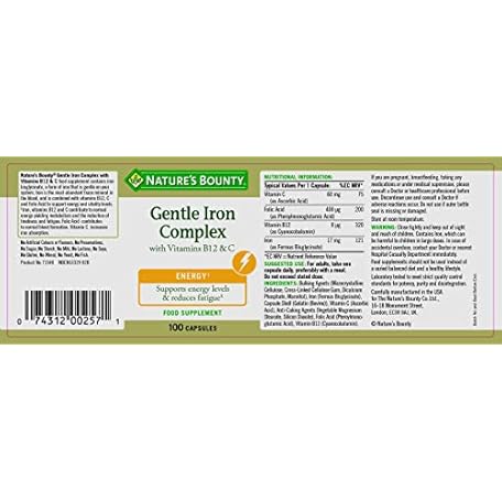 Sản phẩm Nature's Bounty Gentle Iron Complex with Vitamins B12 and C - Pack of 100 Capsules, One-a-Day - Supports Energy Levels and Reduces Fatigue - Gentle on Digestive System đang được bán với giá ưu đãi là $11.6194 tại nước Anh.