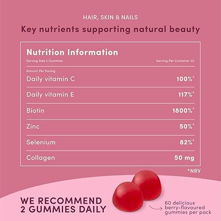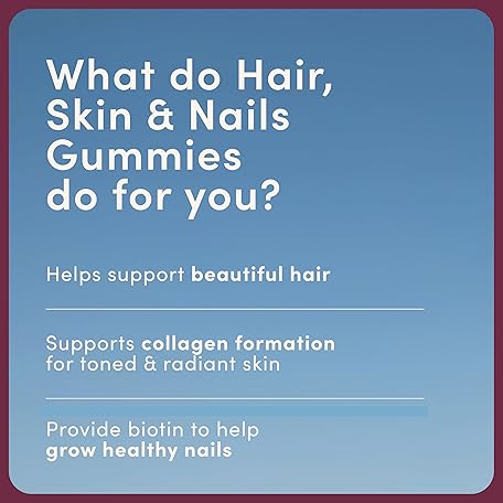 Thông tin sản phẩm Nature's Bounty Hair, Skin and Nails Gummies - Pack of 60 Gummies, 30 Day Supply - with Collagen, Biotin, Zinc and Vitamins C and E - Supports Hair Growth and Healthy Shine