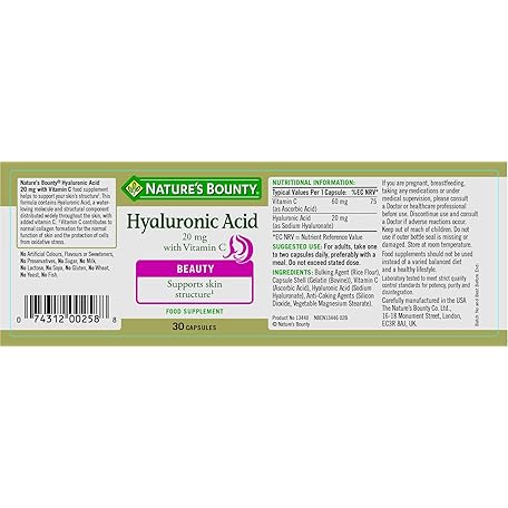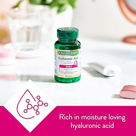 Sản phẩm Nature's Bounty Hyaluronic Acid 20 mg with Vitamin C Capsules - Pack of 30 Capsules - Supports Collagen Formation and Skin Structure - Antioxidant Support Against Free Radicals (Pack of 1) đang được bán với giá ưu đãi là $19.6527 tại nước Anh.