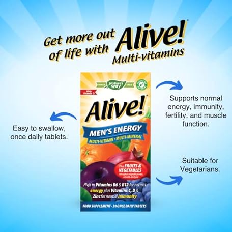 Sản phẩm Nature's Way - Alive! Men’s Energy - Complete Multi-Vitamins & Minerals Specially Formulated for Men - with Dried Blend of Fruits and Vegetables - Suitable for Vegetarians - 30 Tablets đang được bán với giá ưu đãi là $14.7913 tại nước Anh.