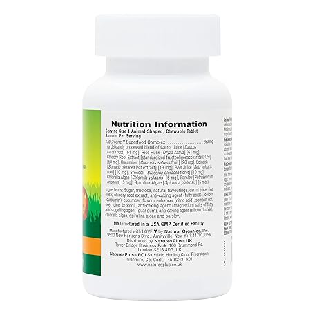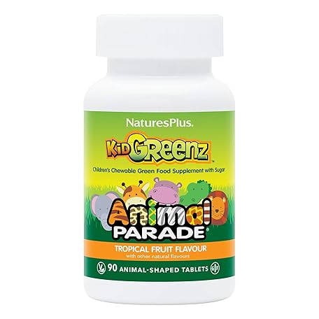 Sản phẩm NaturesPlus Animal Parade KidGreenz - Green Superfood Blend for Kids - Tropical Fruit Flavour - Vegan, Gluten Free - 90 Chewable Tablets đang được bán với giá ưu đãi là $20.3285 tại nước Anh.