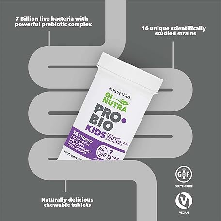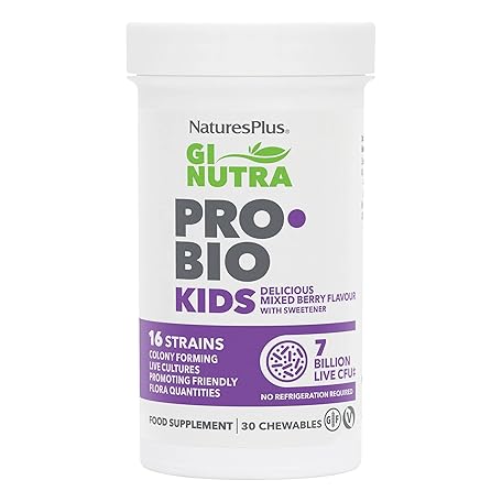 Sản phẩm NaturesPlus GI NUTRA Pro Bio Kids - 16 Live Strains, 7 Billion Probiotics for Children with Prebiotics Fibre Complex - L Acidophilus, B. Longum - Vegan, Gluten Free - 30 Chewable Tablets đang được bán với giá ưu đãi là $27.2718 tại nước Anh.