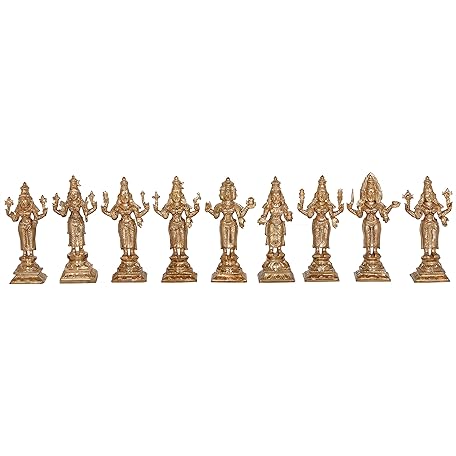 Nava Kannigal - The Nine South Indian River Goddesses - Panchaloha Bronze Statue from Swamimalai