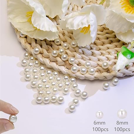 Thông tin sản phẩm Nazeauf Ivory Faux Fake Pearls - 200Pcs, 6mm & 8mm, Round, Craft Beads