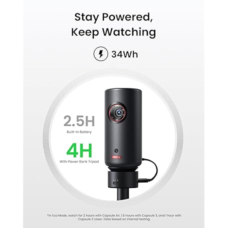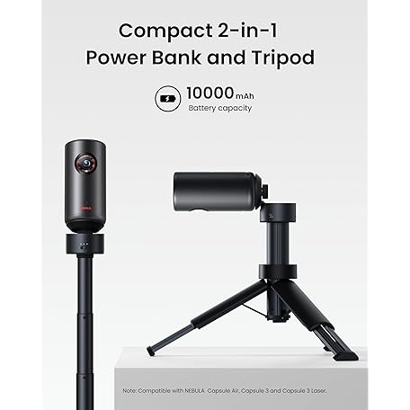 NEBULA Capsule Power Bank Tripod, Up to 2H Built-in Battery, Adjustable Height from 215mm to 840mm, 0-90 Degree Adjustable Viewing Angle, 3s Easy Setup, for The Capsule Series (Only Tripod)
