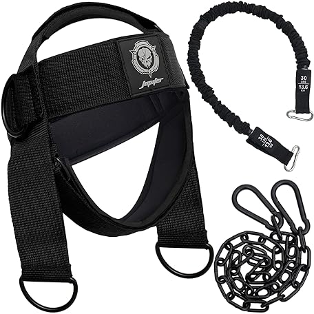 Neck Harness for Increases Neck Core Strength - Neck Exerciser with 30" Heavy Duty Steel Chain for Safely Lifting Weights Up to 280 lbs Black