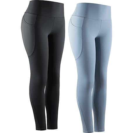 NELEUS High Waist Running Workout Leggings for Yoga with Pockets, 9069 Black/Light Steel Blue, 2 Pack, M