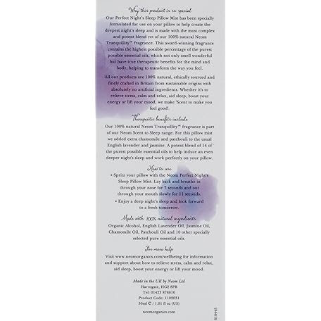 Neom Perfect Night's Sleep Pillow Mist Spray, 30ml | English Lavender, Chamomile & Patchouli| Scent to Sleep