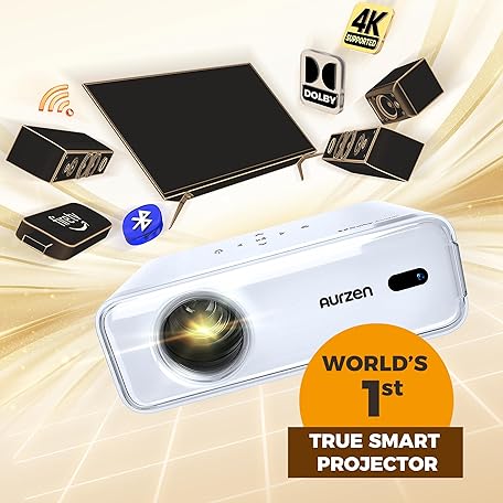 Thông tin sản phẩm [NetfIix Officially & DoIby Audio] Aurzen Eazze D1 4K Supported Smart Projector with Auto Focus & Auto Keystone, 50% Zoom, HDR 10, 60Hz Portable Projector for iOS/Android/USB/TV Stick,White