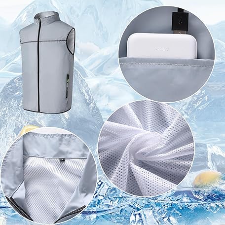 Thông tin sản phẩm NethCasti Cooling Vest with 2 USB Fans 3 Speeds Air Conditioned Jacket Breathable Fan Jacket Sun Protection Ice Cooling Vest with Zipper & Pockets for Constrution, Fishing, Sport in Hot Summer