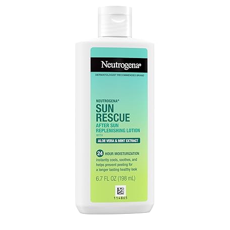 Thông tin sản phẩm Neutrogena Sun Rescue After Sun Replenishing Lotion with Aloe Vera, Mint Extract, & Vitamin E, 24-Hour Moisture for Healthy Glow for Sensitive Skin, Vegan, Non-Comedogenic Lotion, 6.7 oz