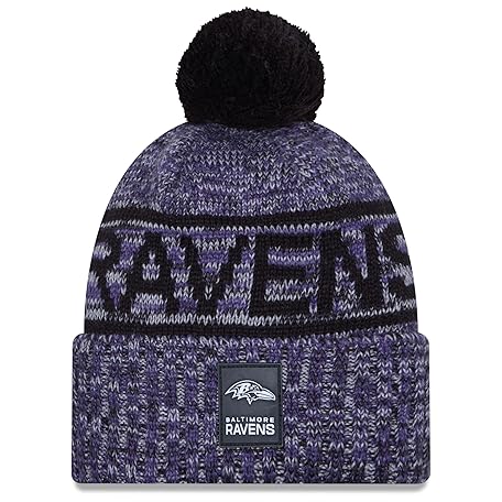 New Era Men's Purple Baltimore Ravens 2025 Sideline Cold Weather Cuffed Knit Hat with Pom