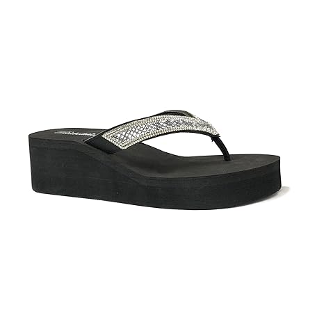 New Women's Rhinestone Sandals Platform T-Strap Jewel Sandals High Wedge Flip Flops black Size: 5