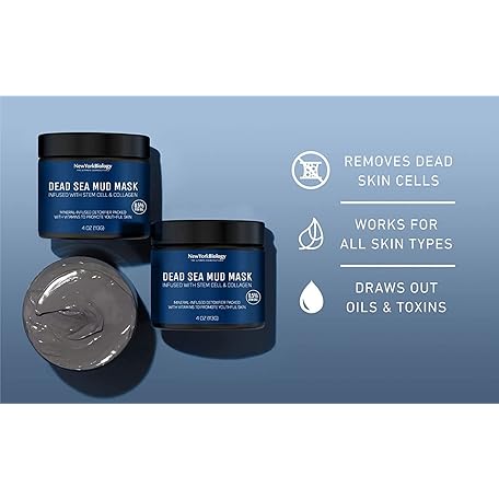 Thông tin sản phẩm New York Biology Dead Sea Mud Mask for Face, Body | with Stem Cell and Collagen | Spa Quality Pore Refiner for Oily Skin | Natural Skincare for Women, Men | Tighten Skin | 113 g