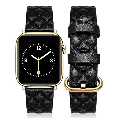 Newlibery Leather Bands Compatible with Apple Watch Band 42mm 44mm 45mm 46mm 49mm for Women,Genuine Leather Checkered Engraved Strap for iWatch Series 11/10/9/8/7/6/5/4/3/2/1/SE/Ultra 1/2/3