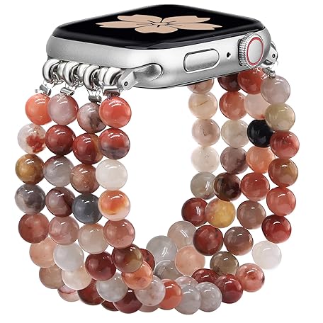 • Newlibery Natural Stone Bracelet Beaded-Bands Women Compatible with Apple Watch 38mm 40mm 41mm 42mm (S10/11) Feminine Cute Handmade Stretch Strap for iWatch Series 11/10/9/8/7/6/5/4/3/2/1 SE 3/2/1