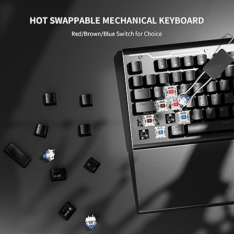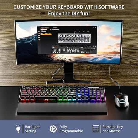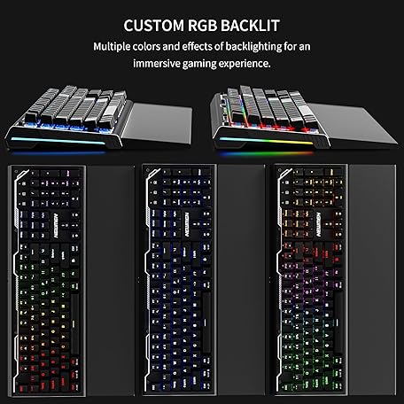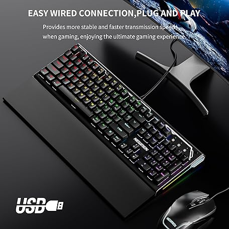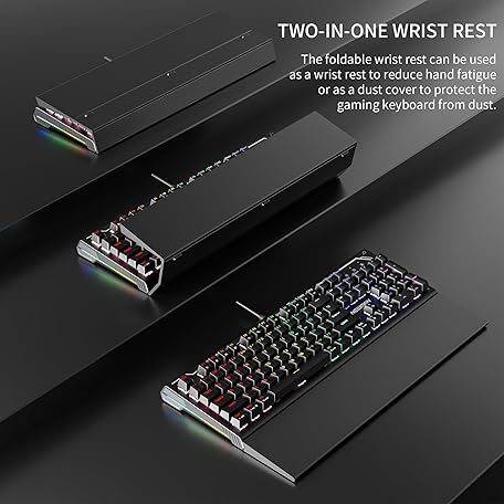 Thông tin sản phẩm NEWMEN GM101 Mechanical Gaming Keyboard(Brown Switches),Wired RGB Backlit Hot Swappable Keyboard,Foldable Wrist Rest,Anti-Ghosting Ergonomic Mechanical Keyboards for PC/Mac/Win,QWERTY Layout,Black