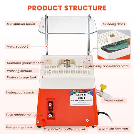 Thông tin sản phẩm NEWTRY 3-in-1 Stained Glass Grinder, Multifunctional Stained Glass Kit for Curves & Edge Angles Grinding & Drilling, Portable Grinder Machine for Glass & Ceramic Polishing, Mosaics Arts & Decoration