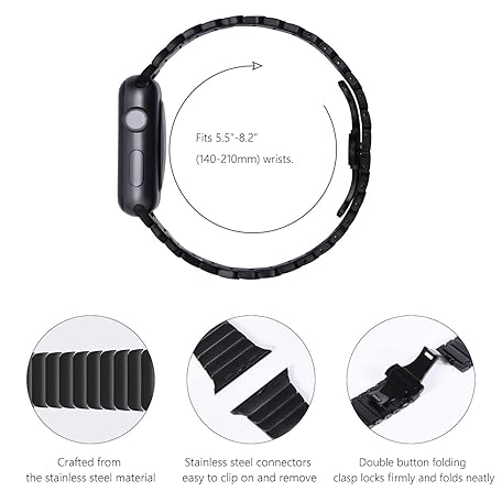 Thông tin sản phẩm NewWays 38mm 40mm 41mm 42mm(Series 11/10) Metal Strap Compatible with Apple Watch,Solid Stainless Steel Link Replacement Band for iWatch Series 11/10/9/8/7/6/5/4/3/2/1/SE,Black