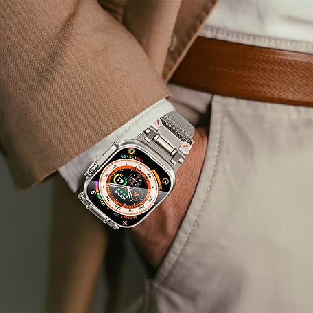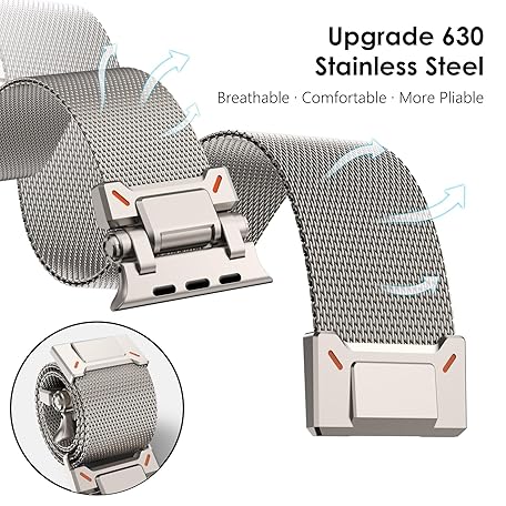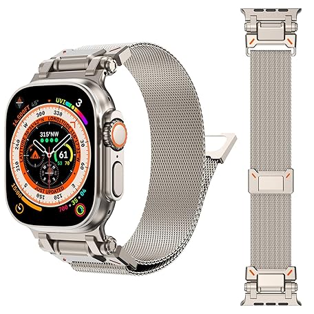 Thông tin sản phẩm NewWays Metal Strap Compatible with Apple Watch Straps 49mm 46mm 45mm 44mm 42mm(Series 3 2 1),Milanese Magnetic Replacement Band for iWatch Ultra 3 2 1 Series 11 10 9 8 7 6 5 4 3 2 1 SE,Titanium