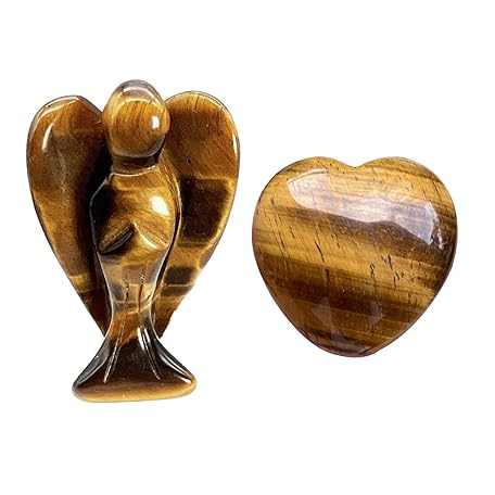 Neyisaa 1.5" Prayer Guardian Angel Statue & Heart Love Pocket Stone Set, Carved Palm Stones Figurines Healing Reiki Meditation, Tiger's Eye Stone