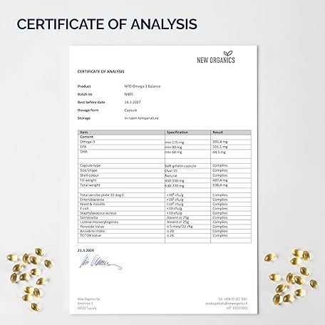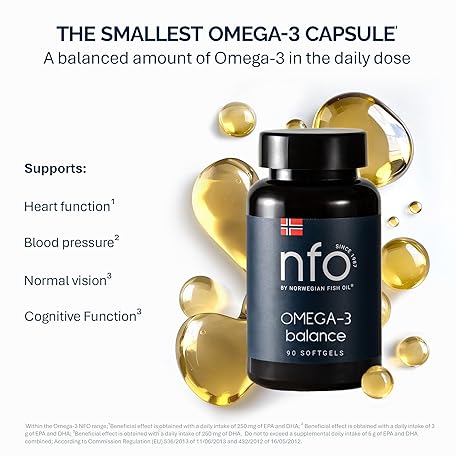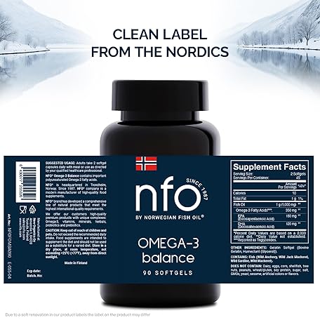 Thông tin sản phẩm NFO Omega 3 Balance [90 Mini Capsules] 1000 mg Omega 3 Capsules High Strength Fish Oil Concentrations of EPA & DHA Fatty Acids, Wild-Caught Fish, High-Dose Amino Acid Complex, Made in Finland