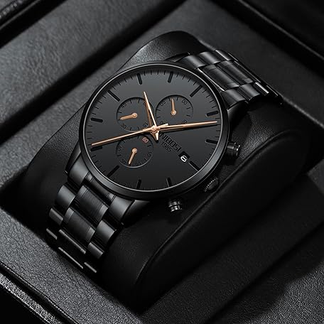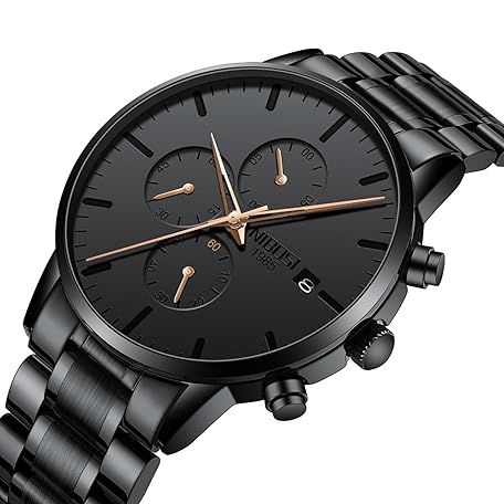 Thông tin sản phẩm NIBOSI Men's Analog Minimalist Watch - Black Dial Chronograph for Business, Military, Casual - Stainless Steel Strap With Date