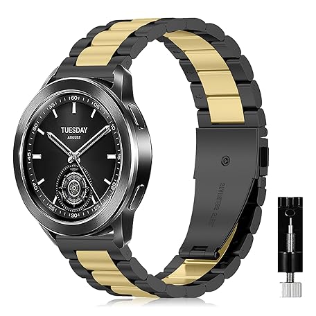 • NicMool Metal Straps for Xiaomi Watch S4 Sport/Watch S3/Watch 2 Pro/Watch S1 Pro/Mi Watch S1 Active, Stainless Steel Business Band for Xiaomi Mi Watch S1/Mi Watch - Black/Gold