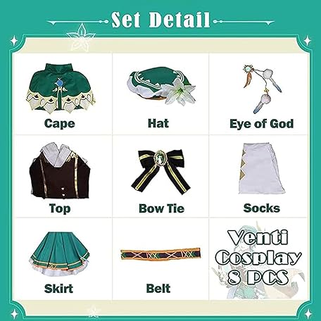 Thông tin sản phẩm NIKKHO Green,L,Game Genshin Impact Venti Cosplay Costume,Genshin Themed Venti Halloween Full Set Maid Dress Kimono Cloak with Accessories, Venti Cosplay Outfits Suit Robe Lolita Dress