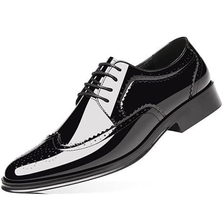 Ninepointninetynine Formal Shoes for Men Lace Up Pointed Toe Brogue Embossed Wing tip Patent Leather Derby Shoes Anti-Slip Non Slip Rubber Sole Low Top Party