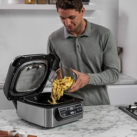 Thông tin sản phẩm Ninja Foodi Grill & Airfryer, 5.7 L Hot Air Fryer, Air Fryer, Dishwasher Safe Parts, 5-in-1, Black/Silver AG301EU