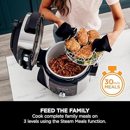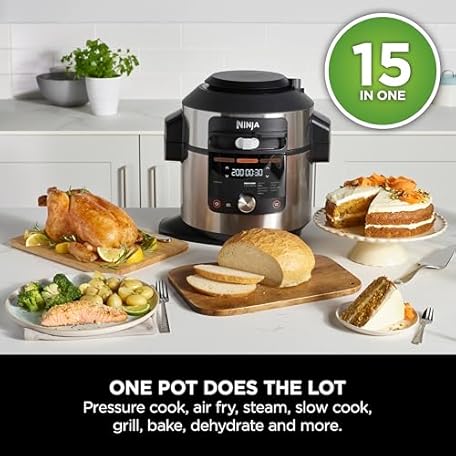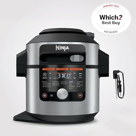 Thông tin sản phẩm Ninja Foodi MAX 15-in-1 SmartLid Multi-Cooker 7.5L with Digital Probe, Electric Pressure Cooker & Air Fryer, Slow Cook and more, Cooks 6 Portions, Stainless Steel/Black OL750UK