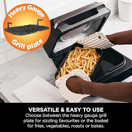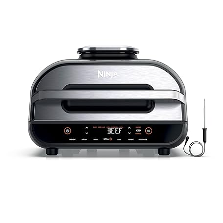 Thông tin sản phẩm Ninja Foodi MAX Health Grill & Air Fryer 5.7L with Digital Cooking Probe, 6-in-1, Air Fry, Grill, Bake, Roast and more, Dishwasher Safe Parts, Large Grill Plate, Grey and Silver, AG551UK