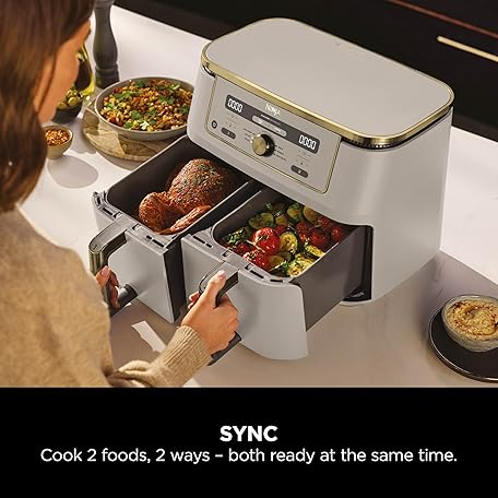 Sản phẩm Ninja MAX Dual Zone Digital Air Fryer, 2 Drawers, 9.5L, 6-in-1, Uses No Oil, Air Fry, Max Crisp, Roast, Bake, Reheat, Dehydrate, Non-Stick, Dishwasher Safe Baskets, Stone Gold DZ400UKSTGD đang được bán với giá ưu đãi là $313.2006 tại nước Anh.