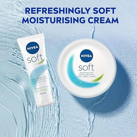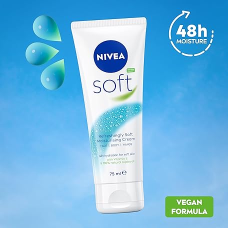 Sản phẩm NIVEA Soft Moisturising Cream (75ml), 48H Moisturising Cream for Face, Body and Hands with Vitamin E and Jojoba Oil, Hand Lotion Moisturises Deeply, Vegan Formula Day Moisturiser đang được bán với giá ưu đãi là $2.8231 tại nước Anh.