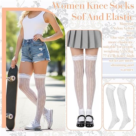 Thông tin sản phẩm Nogeqi Lace Knee High Sock, White Lace Stockings, Elegant Mesh Thigh High Socks for Women Girl Boot Socks Cosplay Lolita Accessories(Small size)