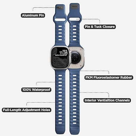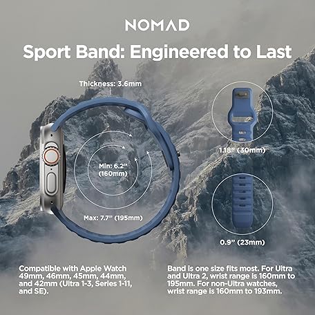 Nomad Sport Band - 45mm | Naval Blue Apple watch ultra 2 band, Designed to give your Apple Watch a modern and athletic look for intense workouts and everyday wear, Compatible with New Series 11, Ultra