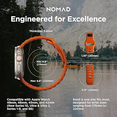 Thông tin sản phẩm NOMAD Sport Band V2 | Unisex, Sport Loop Watch Band | Fluororubber, Black, 22mm, 42/44/45/49mm, Waterproof