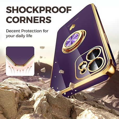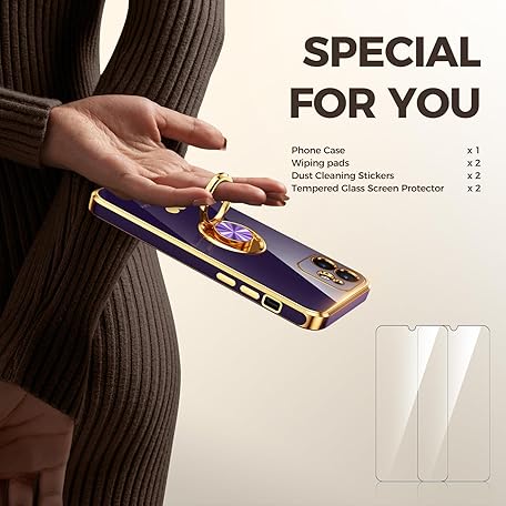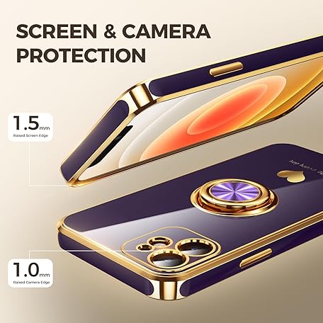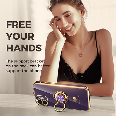 Sản phẩm Nonional Compatible for iPhone 11 Case with 2 Pack Screen Protector, 360° Rotatable Ring Holder [Luxury Hearts Pattern] Plating Gold Edge Slim Soft Phone Cover Case for iPhone 11 - Purple đang được bán với giá ưu đãi là $12.8402 tại nước Anh.