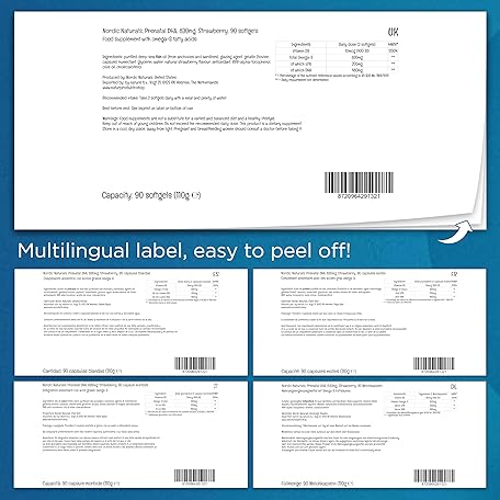 Thông tin sản phẩm Nordic Naturals, Prenatal DHA, 830mg Omega-3 with EPA and DHA, High Dosage, Strawberry Flavour, 90 Softgels, Lab-Tested, Soy Free, Gluten Free, Non GMO