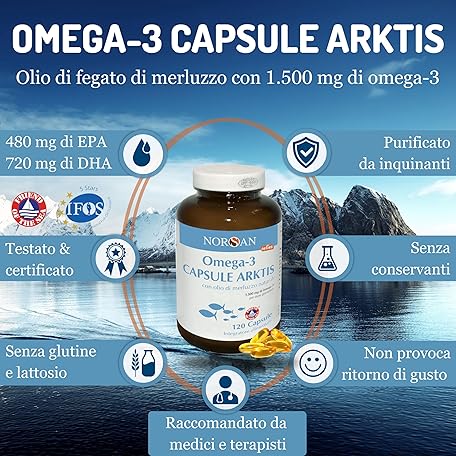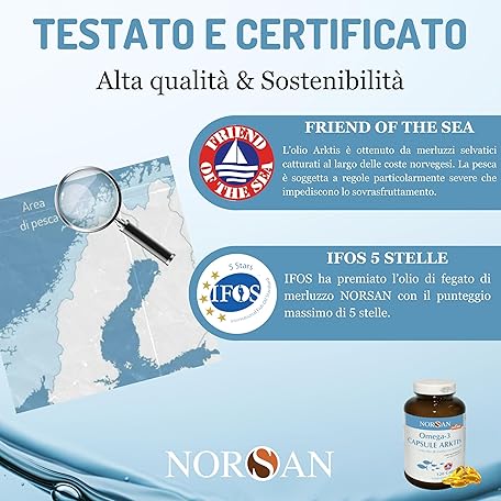 Thông tin sản phẩm NORSAN Premium Omega 3 Cod Oil Capsules high-dose - 1,500mg Omega 3 per Serving - Over 4000 Doctors Recommend NORSAN - 100% Natural Wild-Caught, no unpleasant Fishy burping
